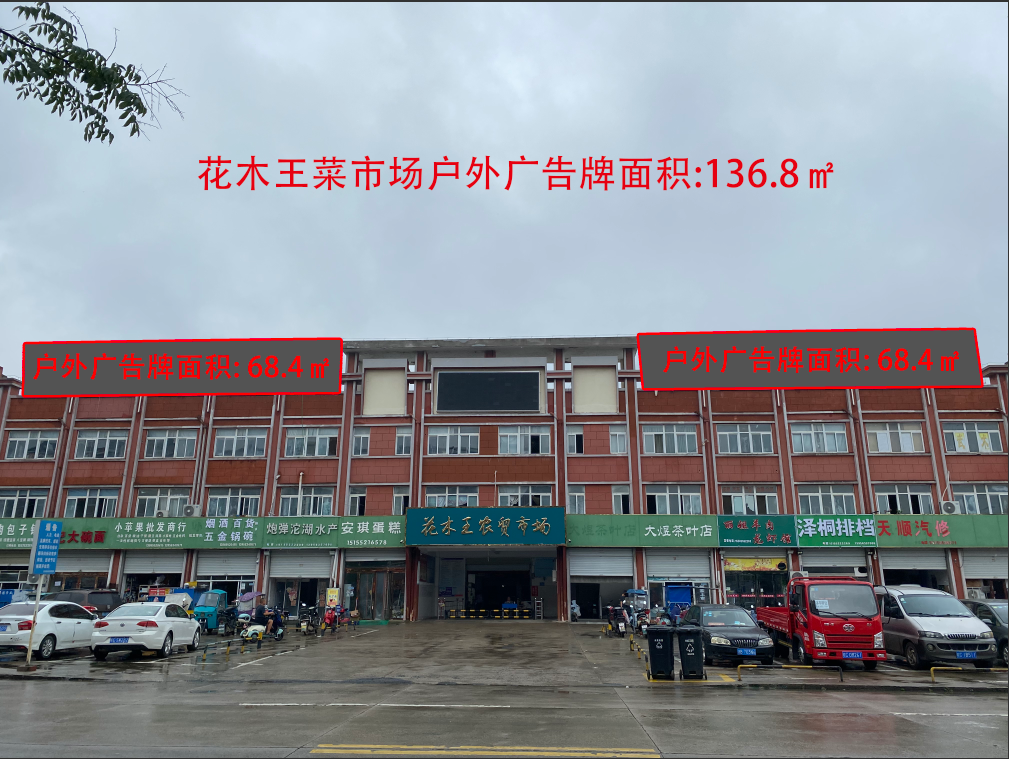 02花木王菜市场楼顶北侧钢结构广告牌,位置在康民路与花木王巷交口。