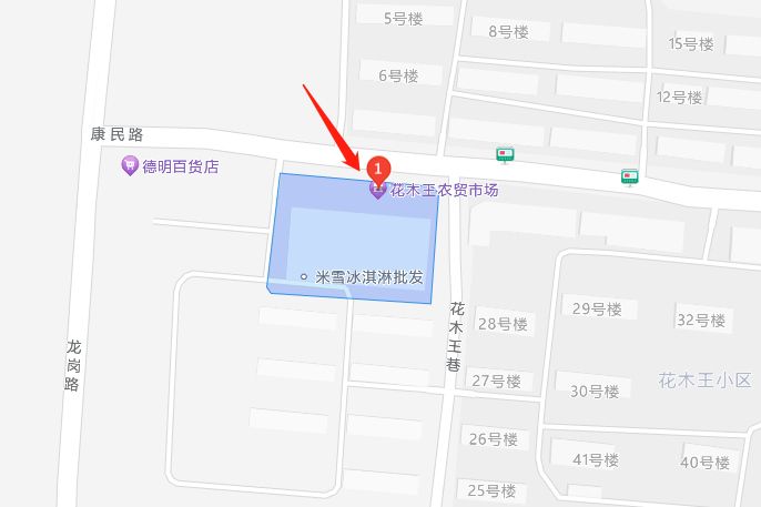 项目2:花木王菜市场楼顶北侧钢结构广告牌,位置在康民路与花木王巷交口。