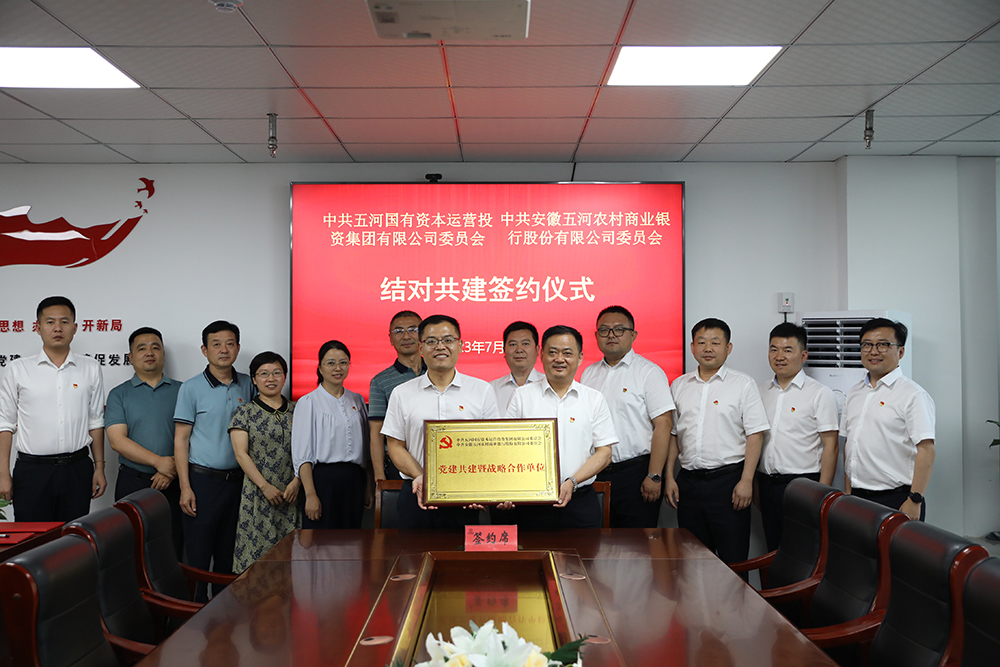 为进一步优化党建提质增效,深入推进银企联动,实现党建和业务资源互补、优势共享,7月10日,中共365英国上市委员会与中共安徽五河农村商业银行股份有限公司委员会举行党建结对共建签约仪式。双方党委班子成员出席本次签约仪式。