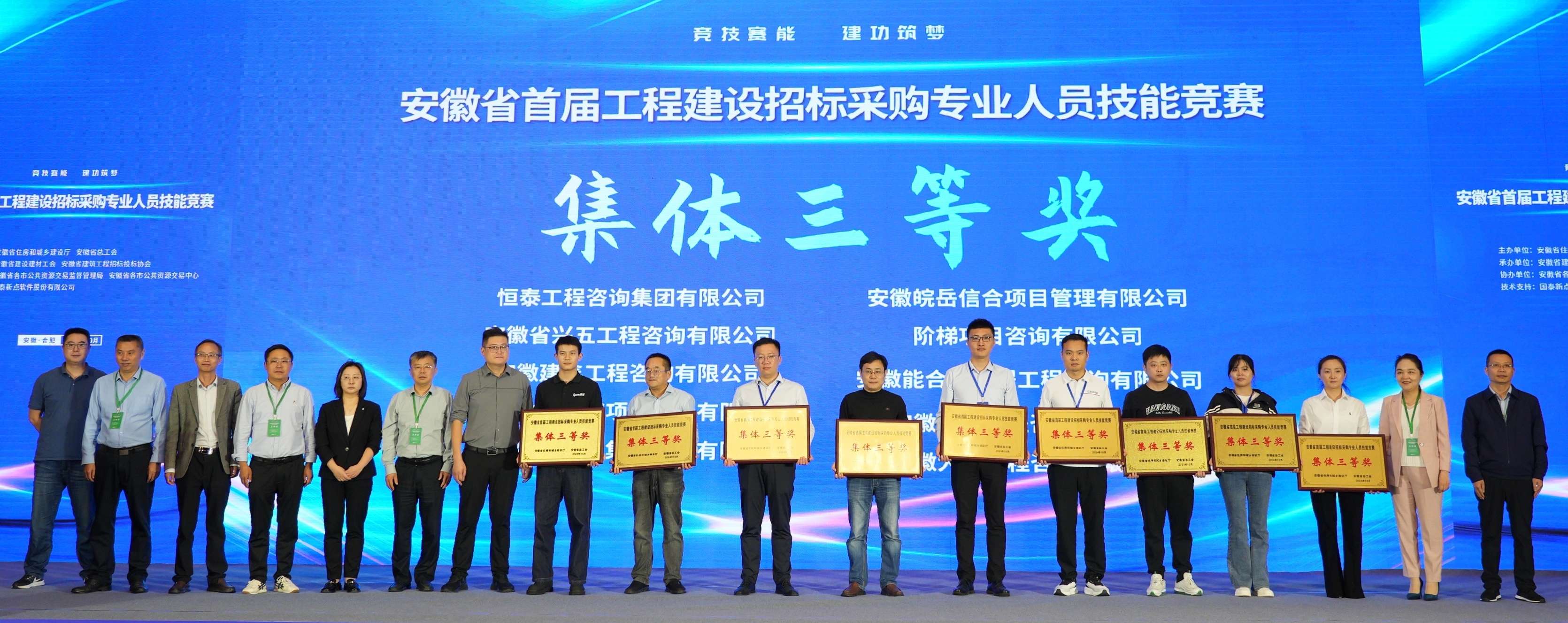 2024年10月12日,由安徽省住房和城乡建设厅、安徽省总工会主办,安徽省建设建材工会、安徽省建筑工程招标投标协会承办的安徽省“首届工程建设招标采购专业人员技能竞赛”在合肥市圆满落幕,安徽省兴五工程咨询有限公司荣获个人三等奖、集体三等奖。
