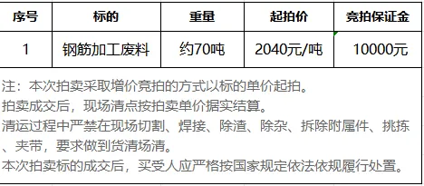 钢筋加工废料拍卖公告